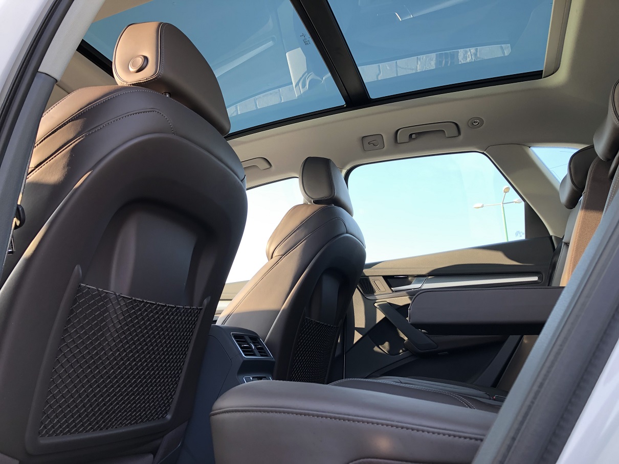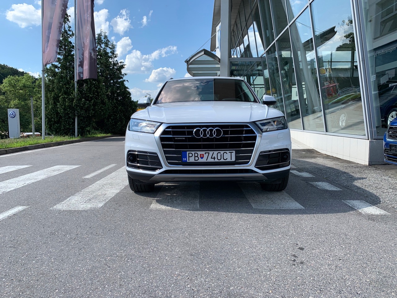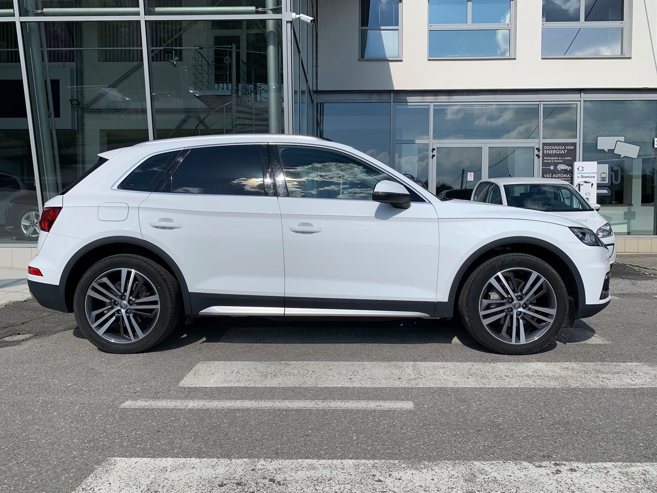 WK8 Audi design selection – hliníkové disky 8J x 19, 5-lúčové, V-dizajn, kontrastné sivé, leštené, pneumatiky 235/55 R 19; multifunkčný športový kožený volant 3-ramenný (1XW); balík interiérového osvetlenia ambiente (QQ2); nástupné lišty hliníkové, osvetlené; interiérové prvky v umelej koži – lakťová opierka rúk vo dverách a bočné časti stredovej konzoly (7HB)