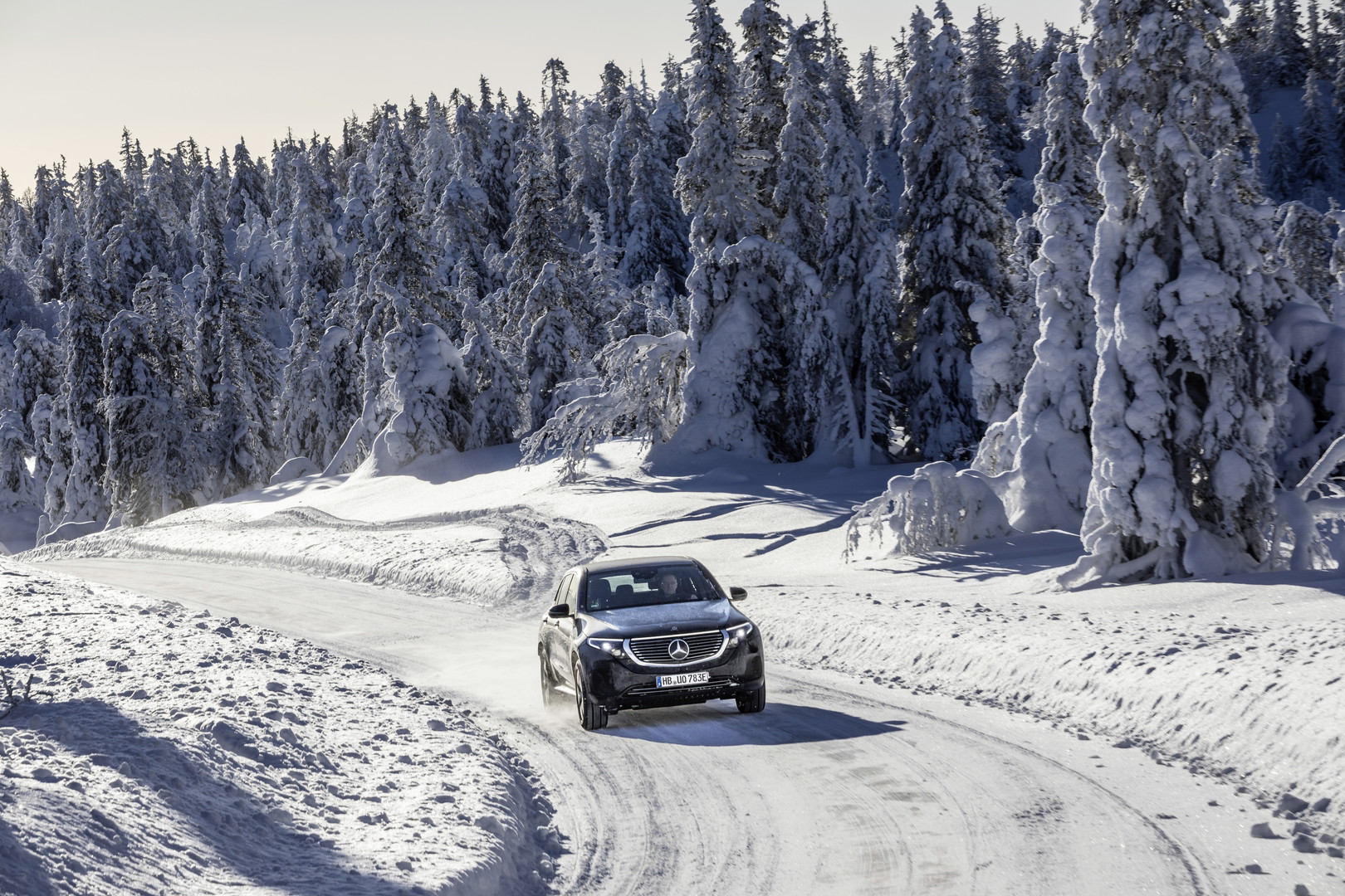 Krátko pred uvedením na trh luxusného, športového auta na elektrický pohon- Mercedes-Benz EQC (kombinovaná spotreba elektrickej energie: 22,2 kWh/100 km; kombinované emisie CO2: 0 g/km, predbežné údaje) ešte model poslednýkrát brázdil švédsku zasneženú krajinu. Osobitnú pozornosť pri týchto ďalších skúškach v zimných jazdných podmienkach venujú inžinieri v švédskom Arjeplogu teplotnému manažmentu akumulátora a interiéru, nabíjaniu v chlade, ako aj bezpečnosti jazdy, trakcii a rekuperácii na ľade a snehu.