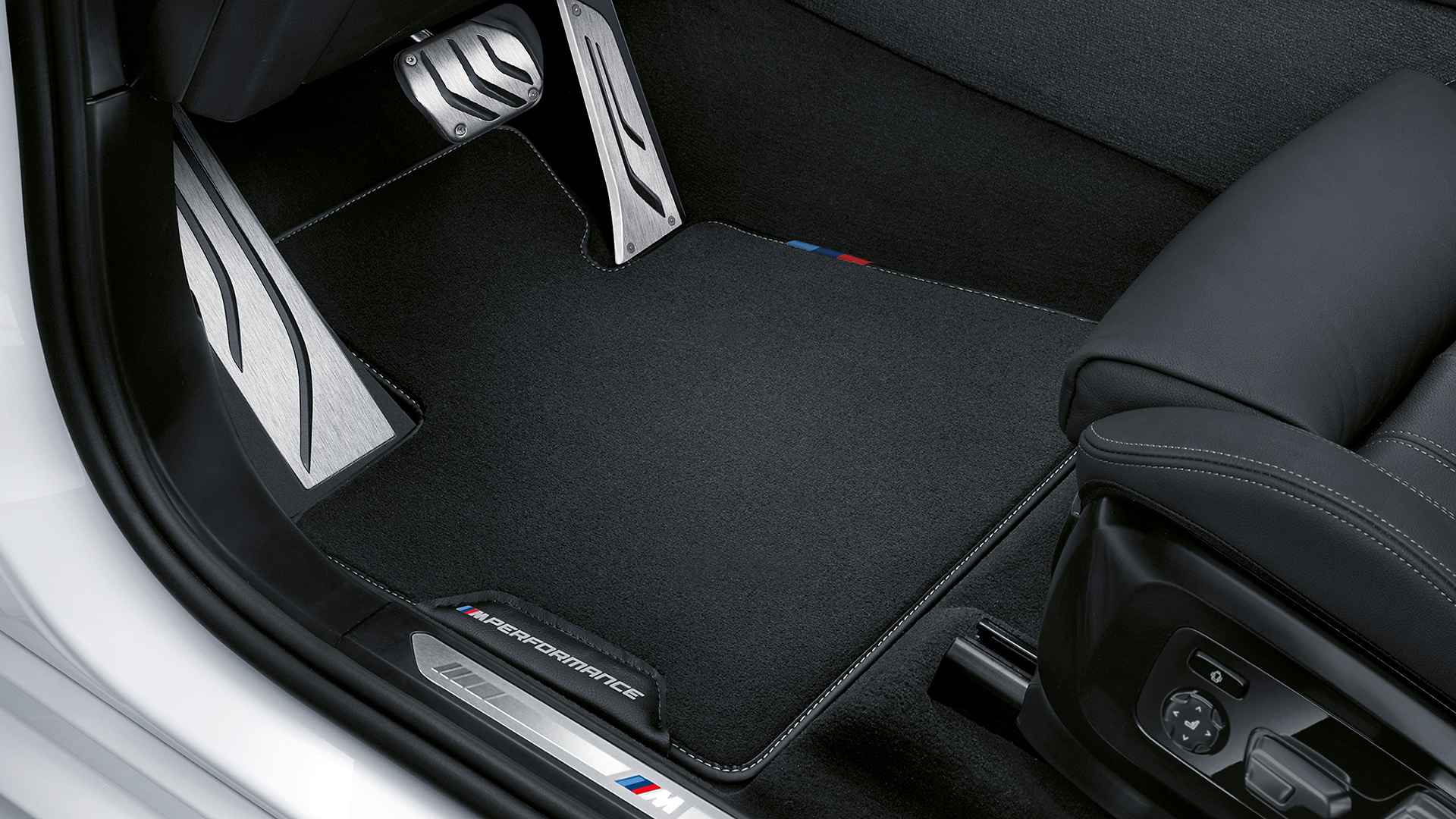 Interiér tohto luxusného, športového auta rovnako obsahuje doplnky M Performance. Volant je pokrytý Alcantarou s červeným označením na polohe 12 hodín. K dispozícii sú aj pádla na radenie z uhlíkových vlákien, podlahové rohože alebo športové pedále.