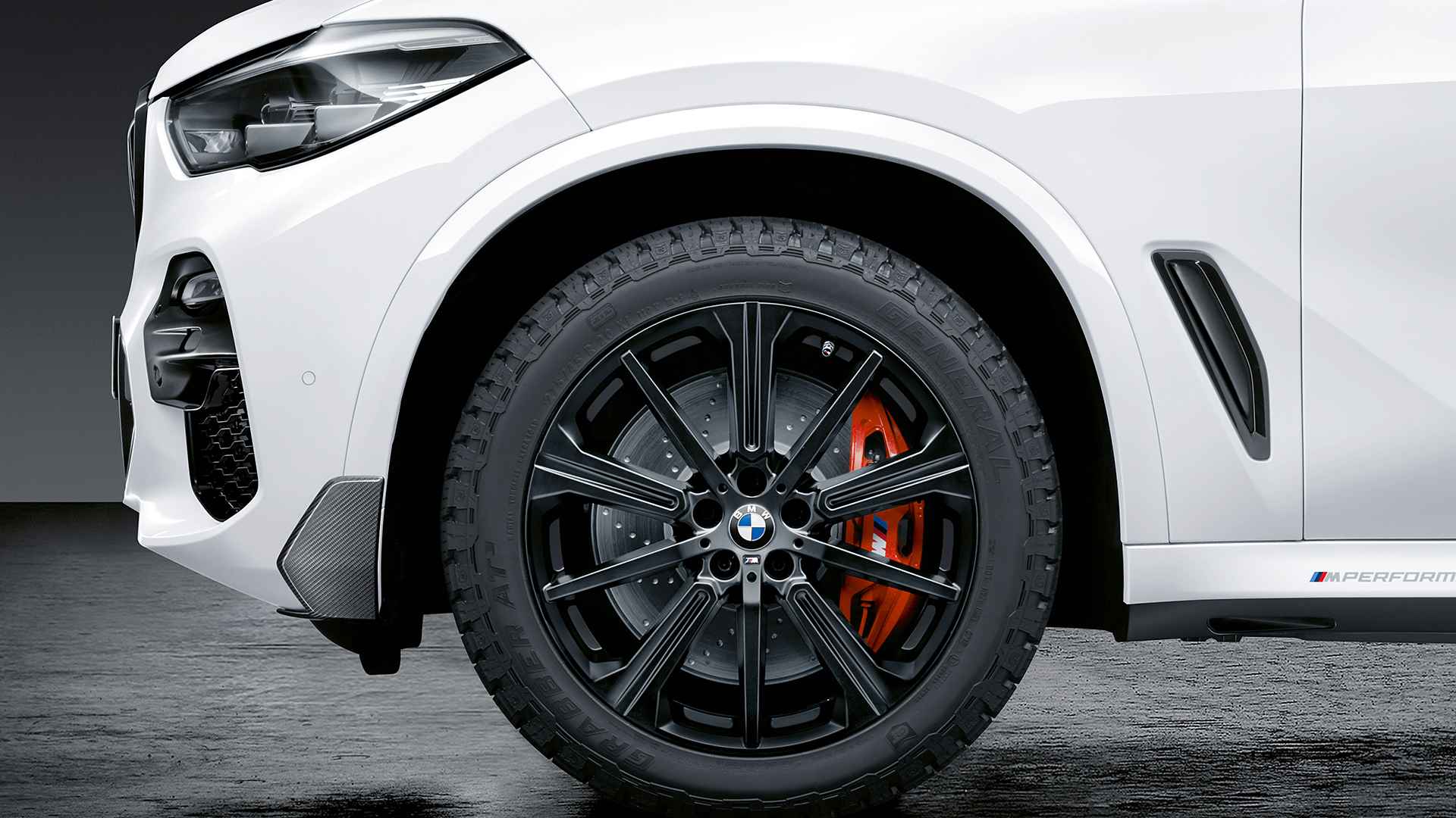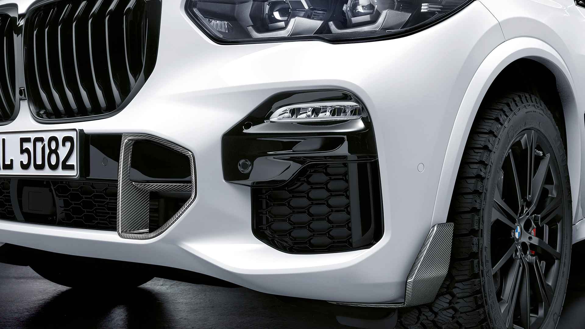 Dizajn exteriéru si zákazníci môžu oživiť doplnkami M Performance z uhlíkových vlákien. Z karbónu môžu byť časti prívodov vzduchu, difúzor, zrkadlá alebo bočné prahové lišty. BMW tiež ponúka na luxusné, športové autá BMW X5 nové 20´´ originál disky Star Spoke BMW v matnom čiernom dizajne. V rovnakom dizajne je možné si objednať aj 22´´ originál disky BMW X5.