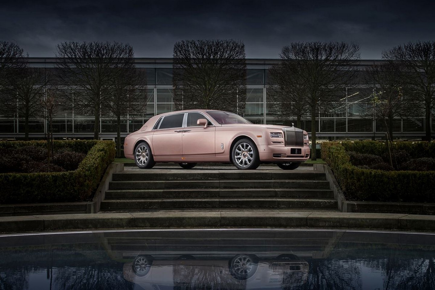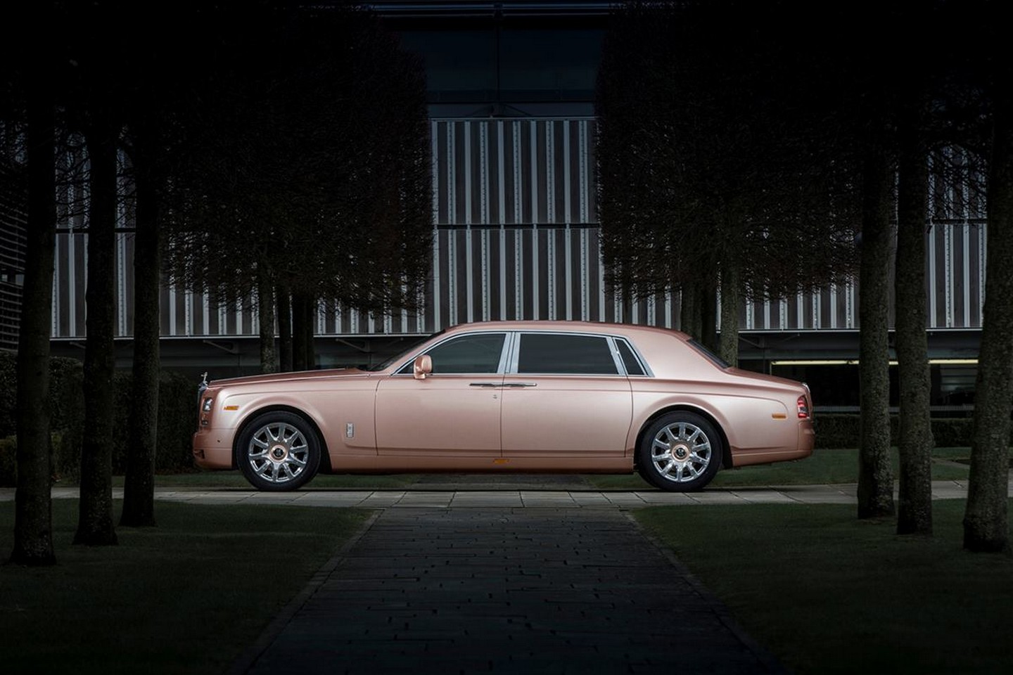 Nie je úplne štandardné použiť na luxusnom aute tejto kategórie ružovú farbu, avšak treba povedať, že Rolls-Roycu táto kombinácia sedí. Phantom s predĺženým rázvorom má tiež zlaté akcenty, ktoré sa objavujú v závislosti na zdroji svetla.