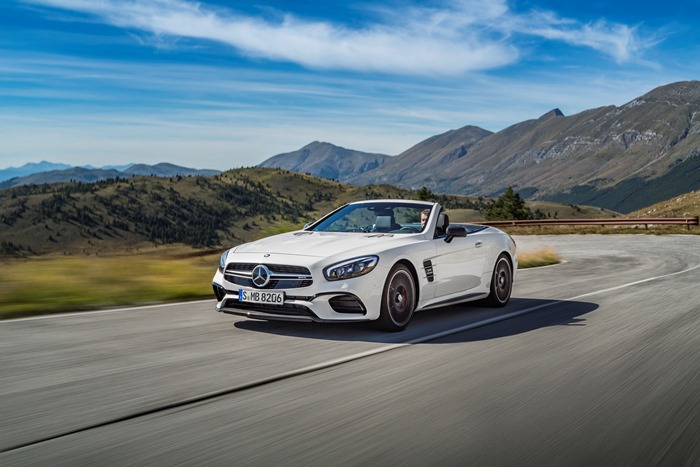 Od apríla 2016 sa aj na Slovensku začne dodávať (od začiatku roka objednávať) v novom vyhotovení, (okrem iného s hliníkovou karosériou znižujúcou o 110 kg hmotnosť) ikonický Mercedes-Benz SL (zrodený pred vyše 60 rokmi, tradičný názov SL – super ľahký, mu zostáva aj po zavedení nového názvoslovia vozidiel s hviezdou v znaku). Čistokrvný rodokmeň pri novom modelovom rade SL pripomína i vzhľad (inšpirovaný historickým 300 SL Panamericana so strmo postavenou maskou chladiča), výrazne športovejšie tvary, najmä vynovená kapota motora, nárazníky i svetlomety (sériovo Intelligent Light System s LED s výrazne von vystupujúcimi svetlometmi). Dizajn interiéru novinky vytvára atmosféru luxusného, športového auta (prispieva i náladové osvetlenie s tromi voliteľnými farbami) v komfortnom štýle. Inteligentné zosieťovanie nového SL zabezpečuje sériový komunikačný modul (pevná karta SIM vo vozidle), ktorý umožňuje využívanie služieb Mercedes me connect.