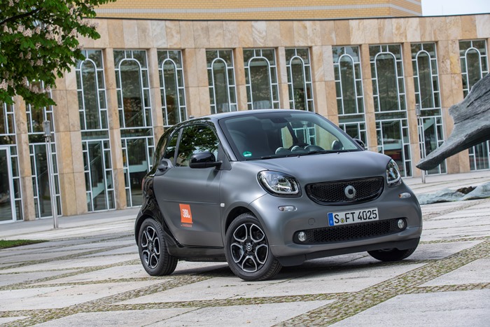 Štúdia smart forgigs, vyhotovená s audio partnerom JBL, jestvuje zatiaľ len v jednom exemplári a je nepredajná. Jedinečný zážitok a krištáľovo čistý špičkový zvuk je však dostupný pre všetky vozidlá smart novej generácie. Ponúka ho systém JBL, ktorý obsahuje 6-kanálový zosilňovač DSP (240 wattov) a osem vysoko výkonných reproduktorov v modeli fortwo, respektíve 8-kanálový zosilňovač DSP (320 wattov) a dvanásť reproduktorov v modeli forfour. Umiestnené sú aj v trojuholníkoch zrkadiel, vo dverách či pri smarte forfour navyše tiež v zadných dverách a v ľavej strane batožinového priestoru.