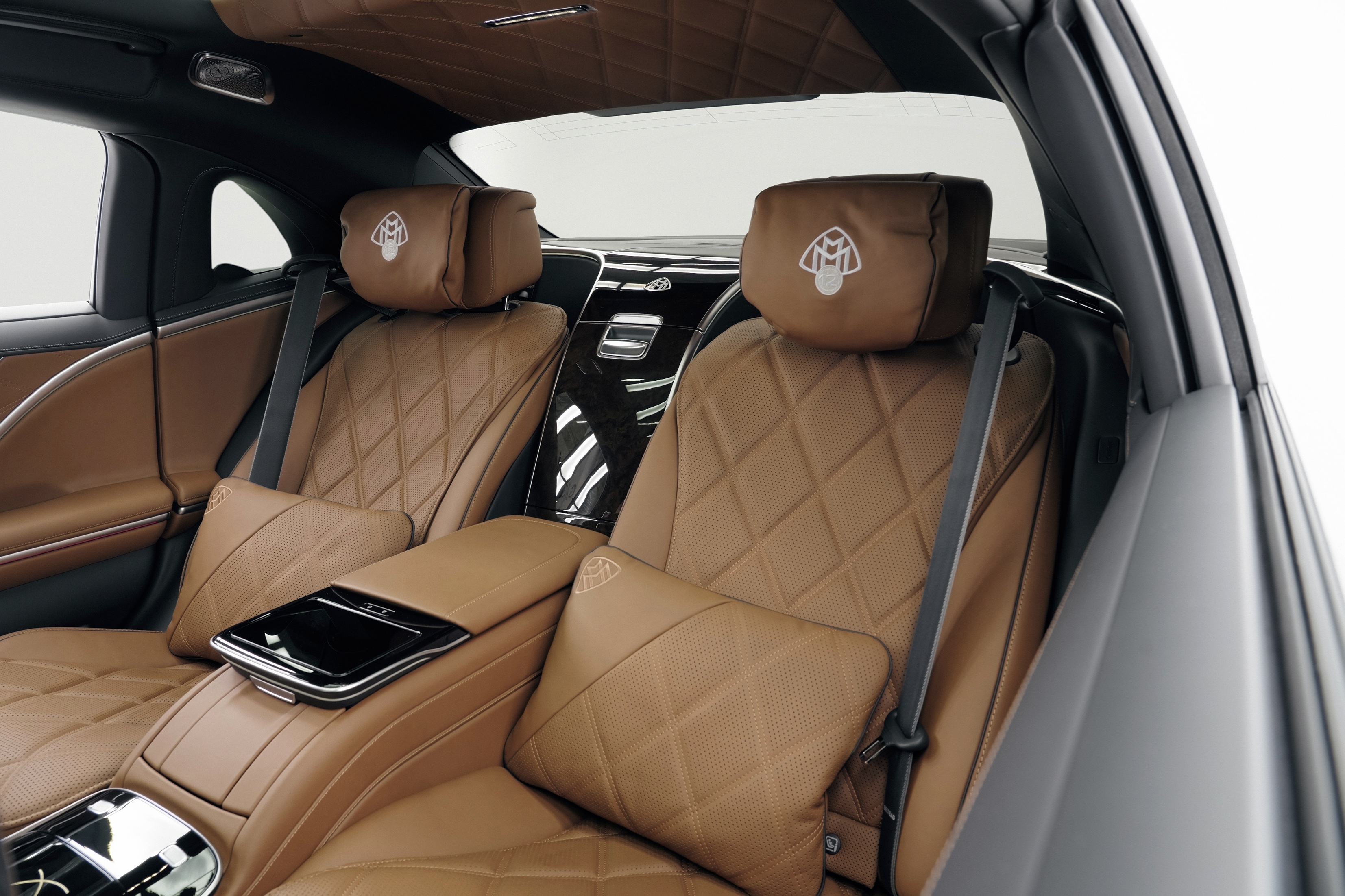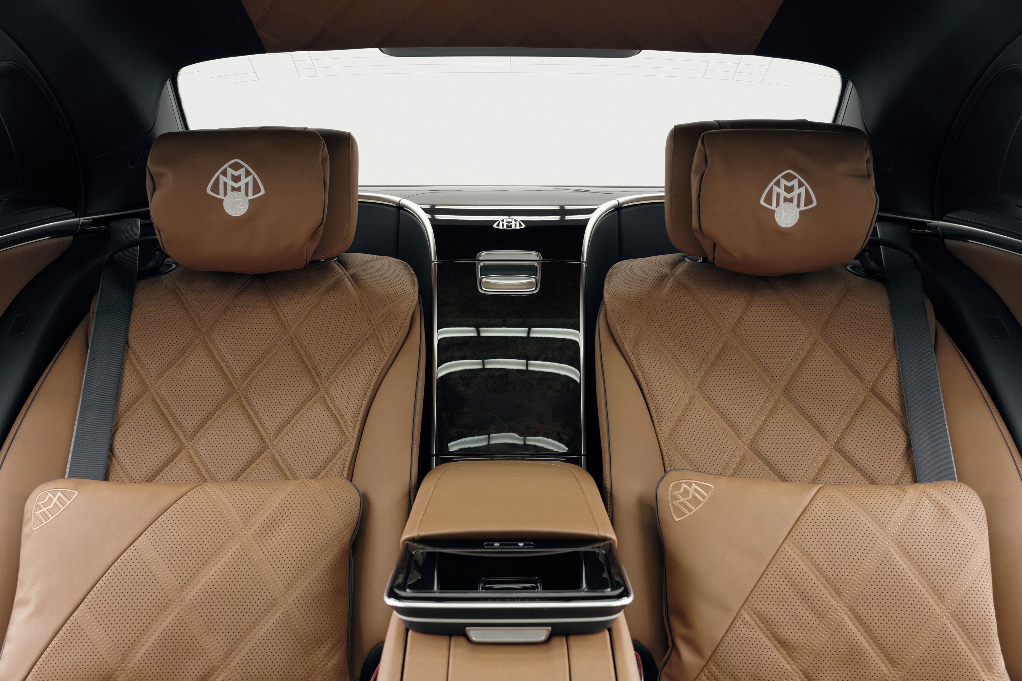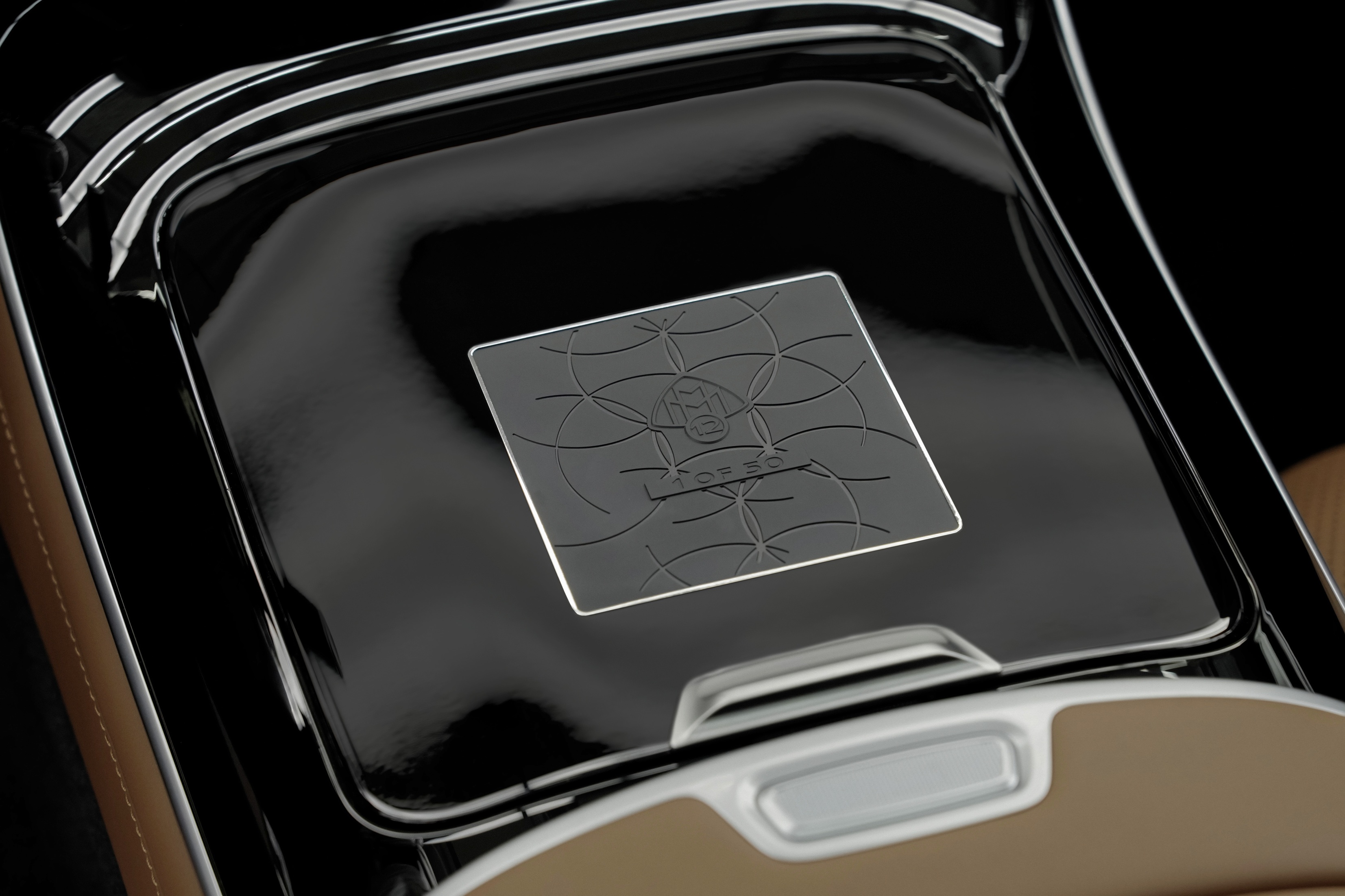 Interiér kombinuje výbavu v koži napa vo vyhotovení MANUFAKTUR Exklusiv sedlová hnedá s vysokolesklým hnedým drevom z koreňa orecha, ktoré sa nachádza aj na volante. Ide o precíznu ručnú prácu, ktorá trvá niekoľko hodín. Mimoriadny vzhľad je ešte umocnený čalúnením stropu vyhotoveným v kosoštvorcovej prešívanej sedlovej hnedej koži, ako aj prešívaním špecifickým pre túto edíciu a plaketou s gravúrou „1 z 50“ na stredovej konzole. Zadnú stredovú konzolu zdobí zlatá intarzia. Emblém Maybach vo vyhotovení špecifickom pre túto edíciu s medailou a číslom „12“ je orámovaný dvanástimi zlatými kruhmi, ktoré zdobia vzor značky Maybach. Vyhotovenie intarzií trvá až sedem pracovných dní a predstavuje ďalší znak najvyššej remeselnej zručnosti.
