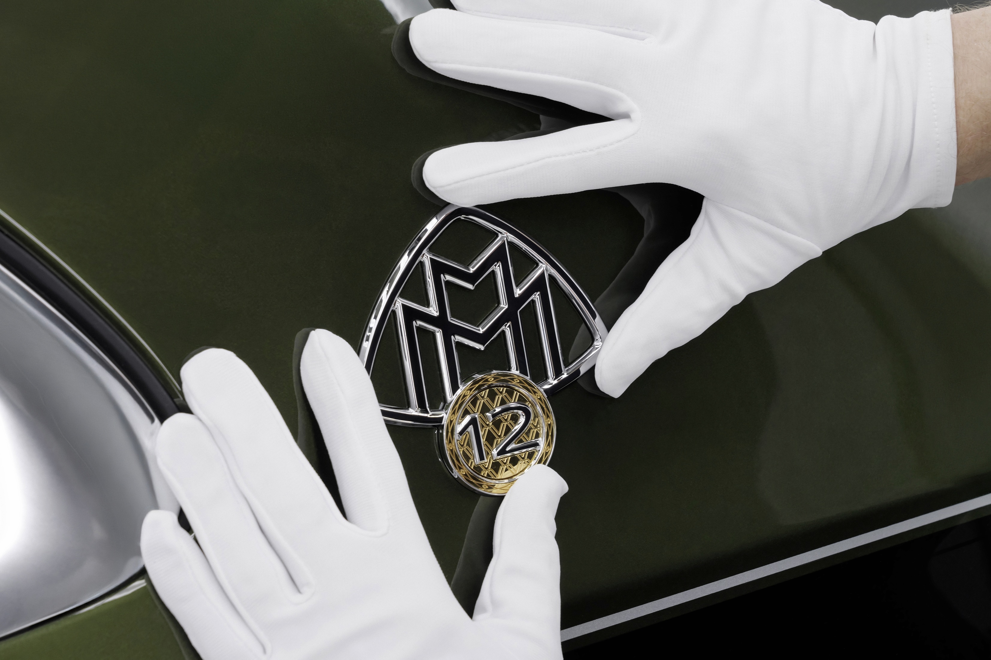 Mercedes‑Maybach V12 Edition nadväzuje na tradíciu individuálneho remeselného spracovania značky prostredníctvom exkluzívneho programu MANUFAKTUR. Jedinečný charakter vozidla umocňuje nápadné dvojfarebné lakovanie – vo vyhotovení olivová MANUFAKTUR metallic v hornej časti vozidla a obsidiánová čierna metalíza v spodnej časti vozidla – zvýraznené kontrastným prúžkom v striebornej metalíze high-tech. Starostlivé nanášanie tohto laku môže trvať až desať pracovných dní, čo je približne dvakrát dlhšie než bežný dvojfarebný lak Maybach. Dizajn završujú 5-otvorové kované disky vo farbe olivová MANUFAKTUR metallic, zatiaľ čo ďalší nádych exkluzivity dodáva vozidlu emblém vo vyhotovení špecifickom pre túto edíciu na stĺpiku C: emblém dvojitého písmena M ako Maybach dopĺňa medaila z chrómu a zlata s výrazným číslom „12“, ktorá pripomína legendárny emblém masky chladiča modelu Maybach Zeppelin DS 8. Prstenec medaily z 24-karátového zlata sa vyznačuje jemnou kosoštvorcovou gravúrou s 12-dielnym delením kruhu. Na vložke medaily, rovnako z 24-karátového zlata, je jemná gravúra so vzorom V, ktorá bola inšpirovaná usporiadaním valcov motora V12 v tvare písmena V.