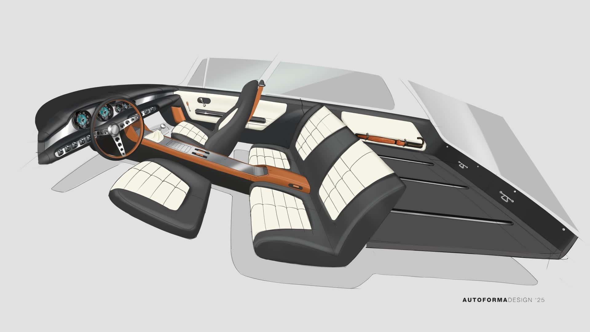 Vo vnútri je čalúnená palubná doska, prepracované sedadlá a dverové panely a nová stredová konzola, ktorá začína na palubnej doske a rozdeľuje zadné sedadlá. Autoforma dokonca ponúka voliteľnú batožinu na mieru, ktorá ladí s interiérom, ktorý si vyberiete.