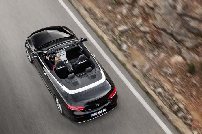 Nový kabriolet Mercedes-AMG C 43 4MATIC zrýchli z nuly na 100 km/h za 4,8 sekundy, vykazuje normovanú spotrebu 8,4 – 8,3 l/100 km a rýchlosť má elektronicky ohraničenú na 250 km/h. Agilnú jazdu novinky podporuje športový podvozok AMG RIDE CONTROL s adaptívnym tlmením nastaviteľným v troch stupňoch a s voľbou režimu tlačidlom, prevzatý z modelu Mercedes-AMG C 63. Výkonnému kabrioletu nechýba ani prepínač pre dynamický, individuálne voliteľný jazdný zážitok s piatimi jazdnými programami AMG DYNAMIC SELECT a parametrizáciou špecifickou pre AMG.