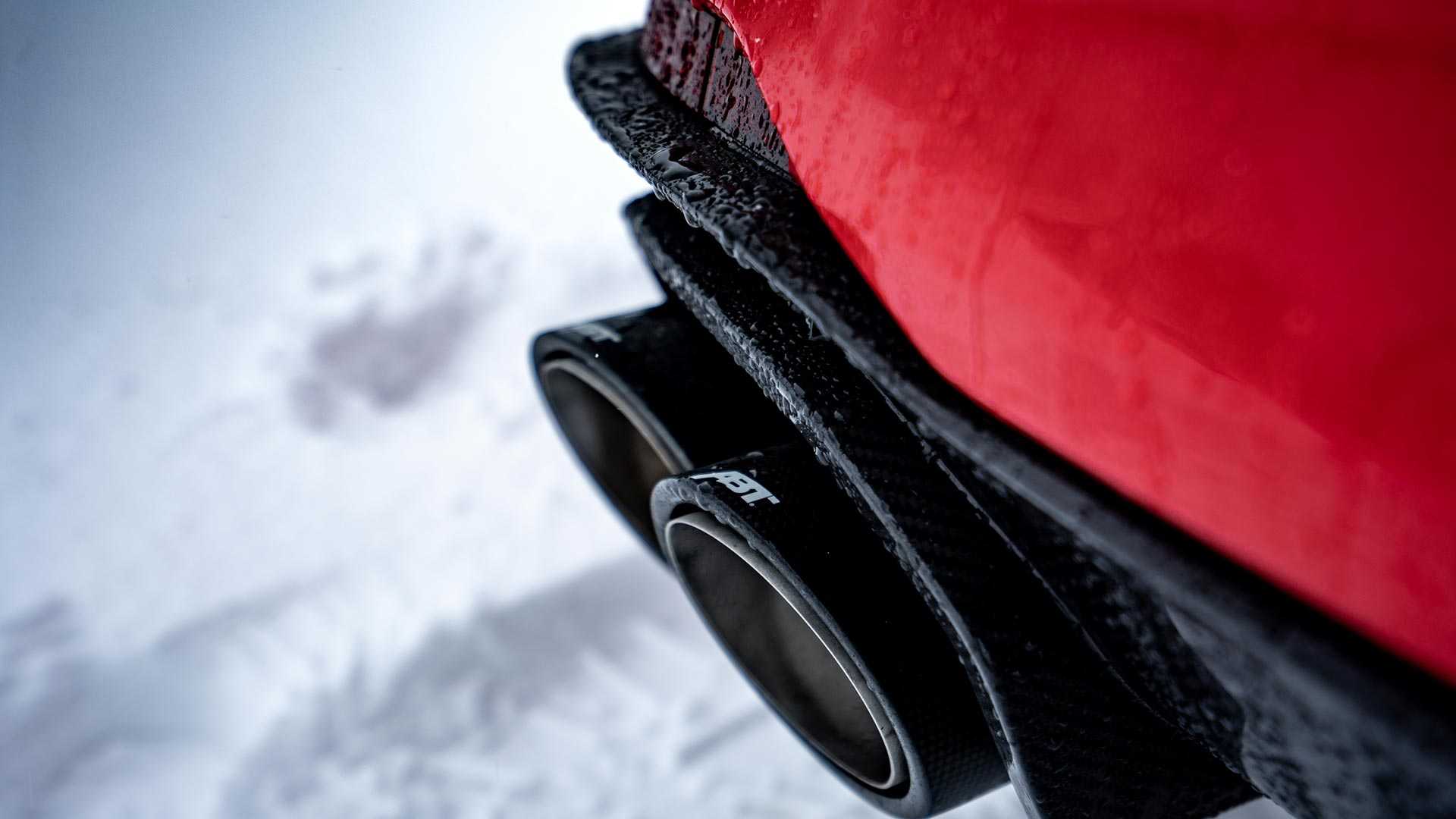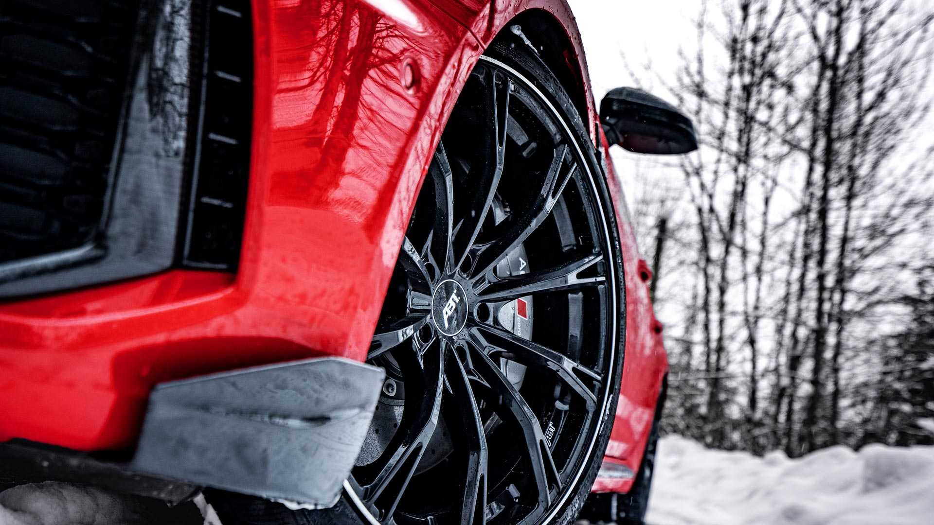 ABT sa trochu vyhral aj s exteriérom, takže pridal karbónové doplnky okolo mriežky, rozdeľovač predného nárazníku alebo časť zadného krídla. Luxusné, športové autá Audi RS4 + ABT jazdia na čiernych 20´´ originál diskoch ABT v dizajne V- lúčov.